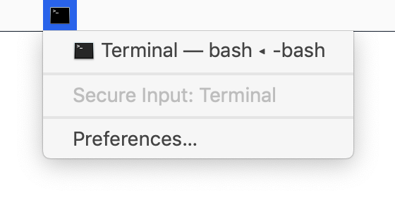 If you see the above, you know exactly what you need to do to fix the problem: Disable Secure Keyboard Entry in the listed app. How exactly do you do that? It may be a menu item, as in Terminal. It could be a prefs setting. It could require closing the app's window. You may have to finish inputting your password on some web page (or click out of the password input box). In short, there are many ways to disable Secure Keyboard Entry, and you'll have to figure it out on a case by case basis.
