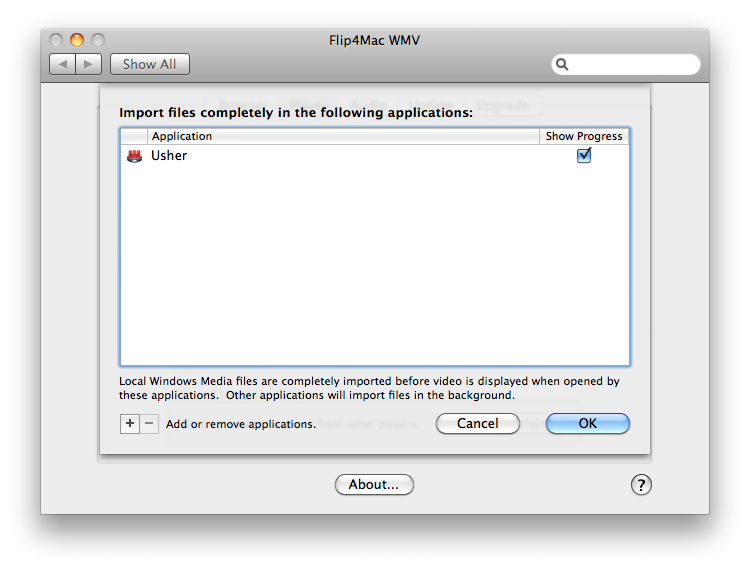 At the bottom of the window, click the plus sign, navigate to and select Usher in the Open dialog that appears, then click Open. When done, this is what you should see; click OK to finalize.